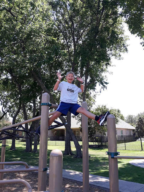 August 20--I had to go into the preschool in the morning. And of course about 40 minutes before I was going to leave the program that the kids use for school wasn't working. We got calls and emails from their campuses and the school district. It affected most of DFW's school districts. Luckily, we had just one hiccup on Dylan's assignment, but then they were back in business. I was home to eat lunch with Dylan and then go to the park.